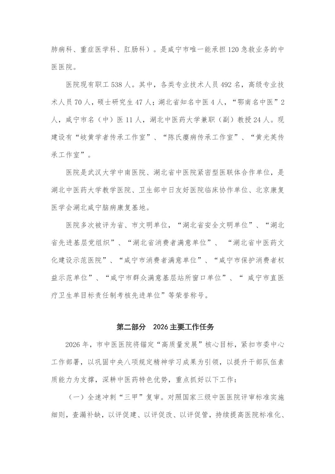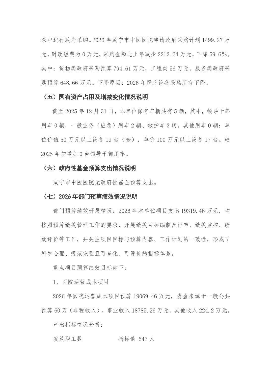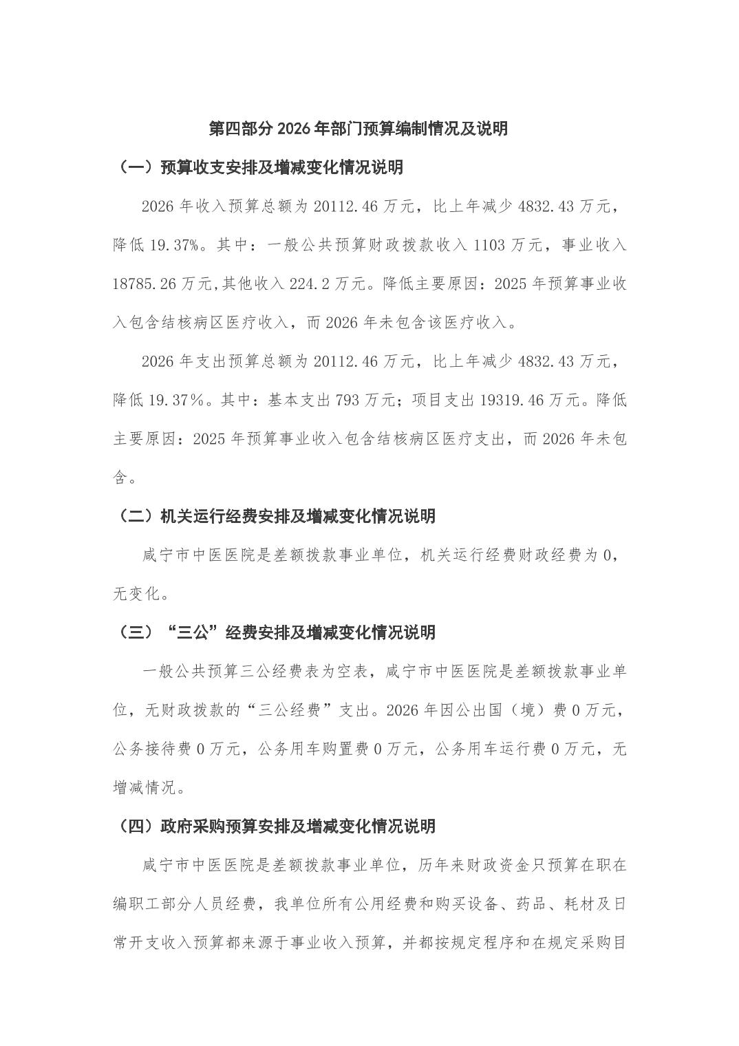 咸宁市中医医院2026年部门预算公开说明